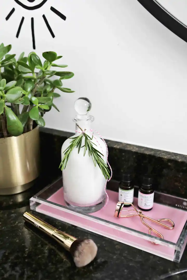 Tie a few sources of rosemary to the bottle with colored rope for a gifted idea, but definitely make a double batch because you also want your own stock. To use, just pour 1 cup of bath salts into a warm bath and stir with your hand to spread the salt through the water.