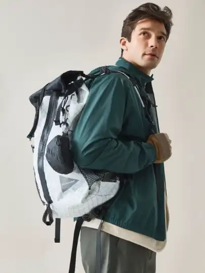 jumper byGoldwin 0, trousers bySnow Peak, backpack byAndWander