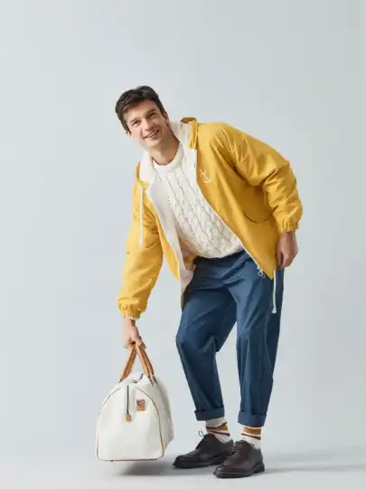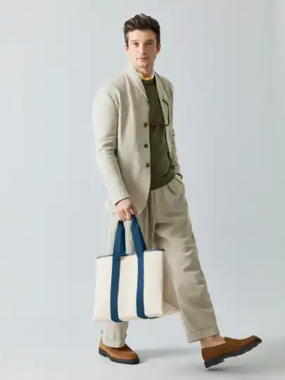 jacket byLa Paz, jumper byBrioni, trousers byAltea, socks byRototo, shoes byHeschung, bag byCanali