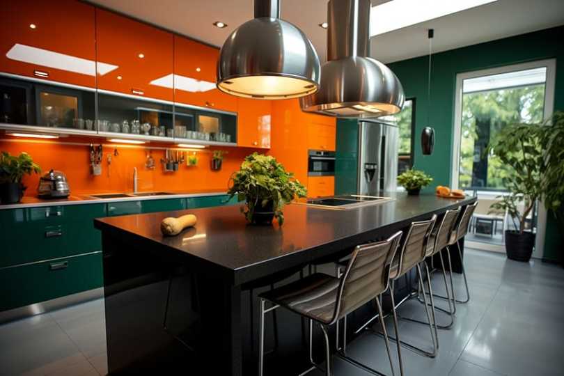 Orange and Green Interior Designs Orange and green are not the first choice when creating designs, as they tend to clash if used incorrectly. You can try using them as accents of color, either by themselves or even together. In a room, consider cushions, throws, or art pieces that can easily be removed if the look does not appeal to you anymore. Orange by itself can bring in warmth and can work with other warm colors like yellow and pink or create a contrast with