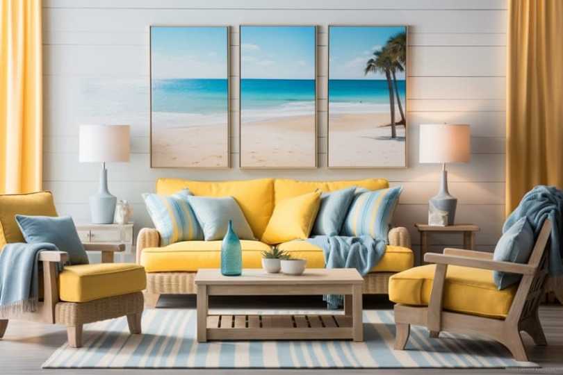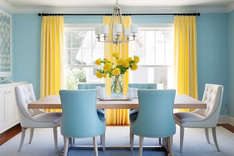 Lemon yellow, with its bright and cheerful demeanor, combines seamlessly with the calming tones of sky blue. This pairing is reminiscent of sunny days and clear skies, making it a refreshing choice for spaces that aim to evoke a sense of joy and tranquility.