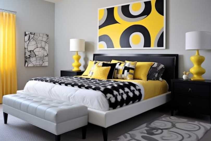 ShadeHex CodeCMYK Color Code (%)RGB Color CodeColorPastel Yellow#FFEC7D0, 7, 51, 0255, 236, 125 Black#0000000, 0, 0, 1000, 0, 0 White#FFFFFF0, 0, 0, 0255, 255, 255This can be done with the walls, big, built-in furniture pieces, or other larger furniture pieces such as the sofa in a living room, or the bedding in your bedroom.