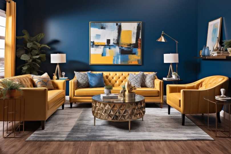 Goldenrod exudes warmth and energy, creating a welcoming atmosphere, while navy blue adds a touch of sophistication and depth. This pairing is perfect for balancing a room, providing a harmonious blend of vibrancy and classic elegance.