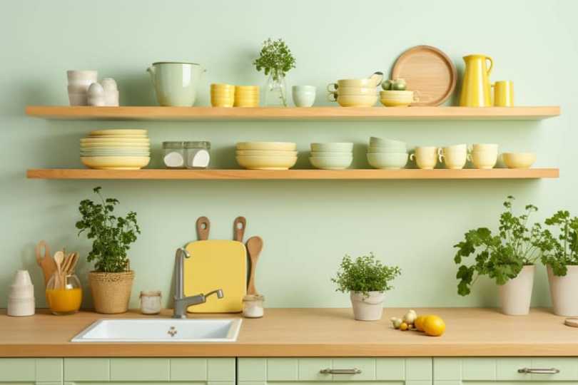 Butter yellow brings a soft and calming effect to a space, promoting a sense of warmth and comfort. Paired with mint green, the combination becomes a breath of fresh air, creating a light and airy ambiance that is both invigorating and tranquil.