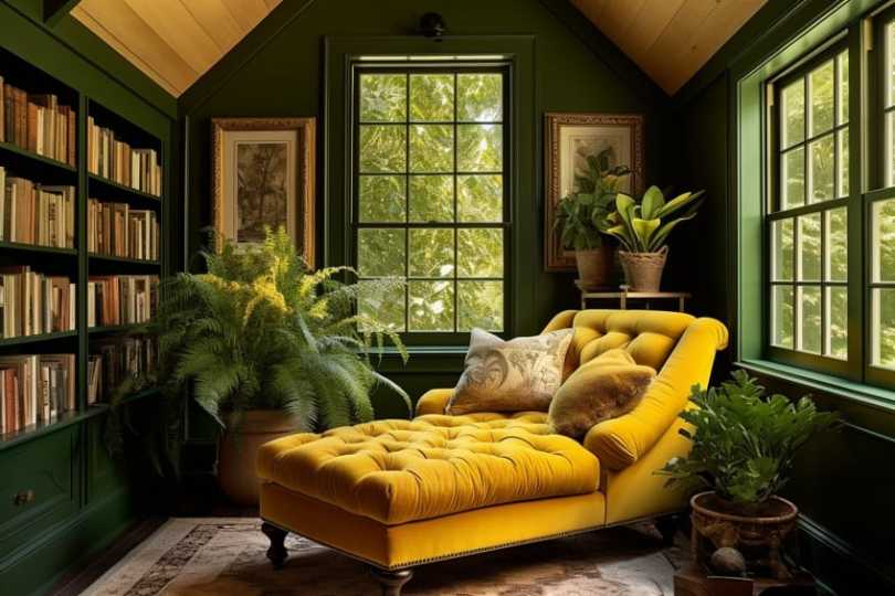 Honey yellow adds a touch of sweetness and warmth, while forest green brings in a sense of nature and tranquility. This pairing is reminiscent of a sunlit forest, creating a harmonious blend that is both inviting and connected to the outdoors.